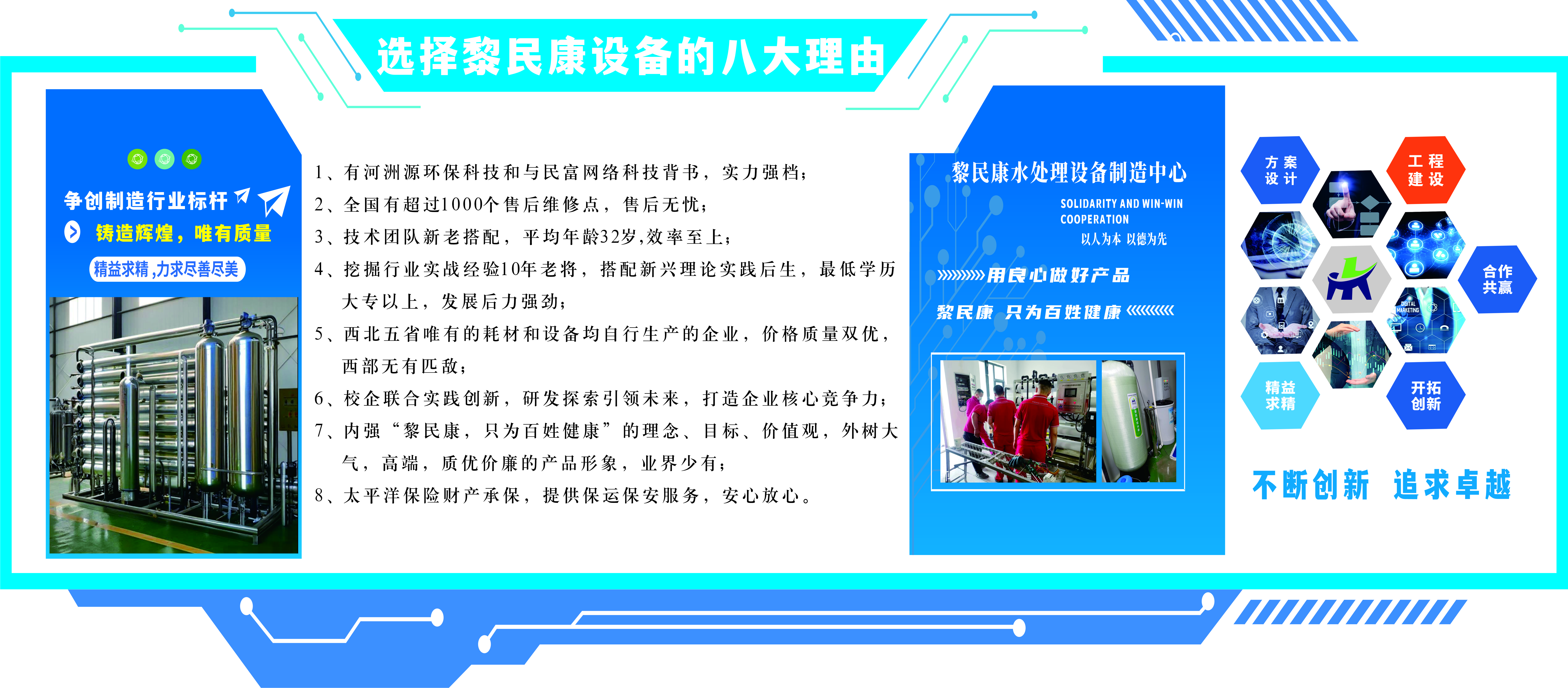 黎民康水處理設(shè)備公司,自成立之日起,邊樹立起:內(nèi)強“黎民康,只為百姓健康”的理念、目標(biāo)、價值觀;外樹大氣,高端,質(zhì)優(yōu)價廉的產(chǎn)品形象,業(yè)界少有; ...